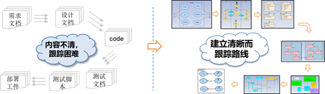 建模整个系统开发周期的工作流程、工具和工件的关系,支持如上各种工具的接口: