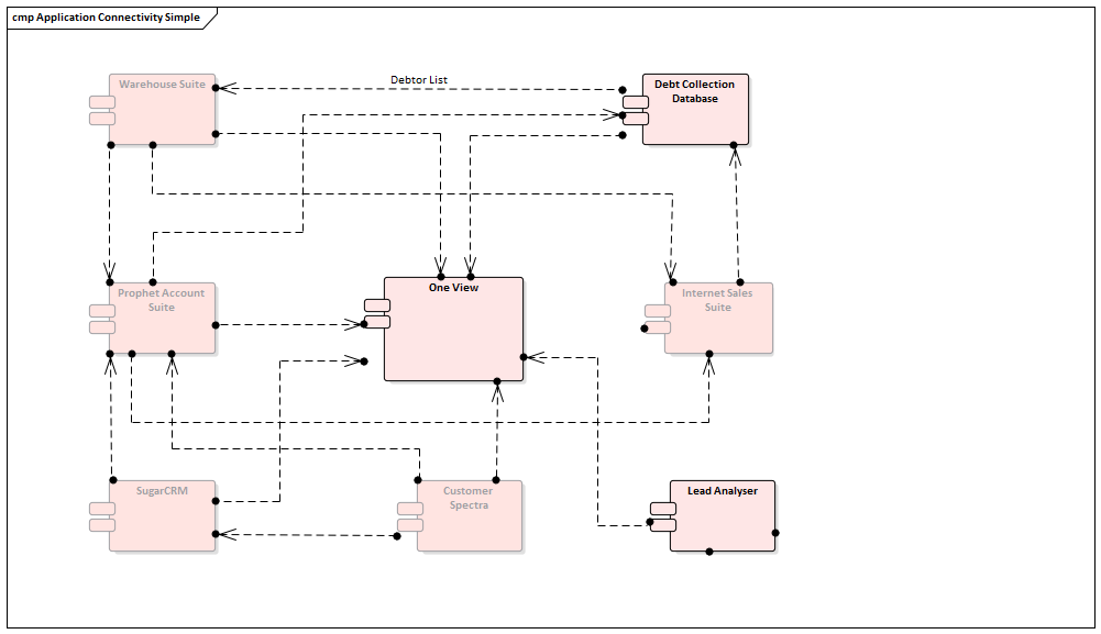 图是在应用程序体系结构中表达思想的最常用机制之一。它们可以是大幅面图,旨在提供应用程序的整个视图并打印到海报大小的纸张上,或者用于文档的较小图表。应用程序通信图是大型A0大小图的典型候选者,其中所有(或至少最重要的)应用程序都打印在单个图表中,其中的线条显示它们如何连接在一起,如果需要,包括有效负载。同样,应用程序通信图可以仅使用一组实现业务服务或功能的应用程序来创建。