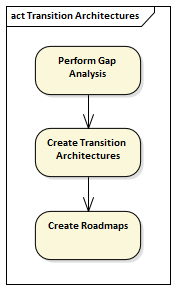 Transition架构是从基线架构到最终目标架构的垫脚石,理论上是目标架构本身。它们代表了从当前状态到某些渴望到未来状态的实际步骤,并且通常在实施级别的项目中表示为项目或阶段。