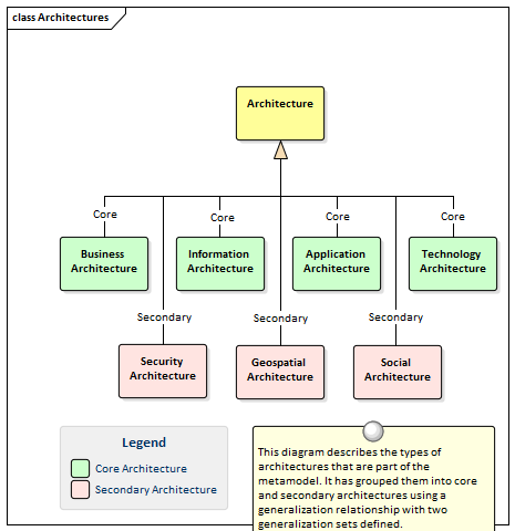 元模型是模型的模型,描述了可用于构建体系结构的元素和关系。元模型用作语法,用于定义类型以及它们如何相互关联。在创建任何体系结构模型之前定义元模型至关重要,因为它将告知架构师应该使用哪些元素以及如何将它们一起使用。这种格式的元模型是被动模型,仅作为指导和交流工具; 如果需要更正式的模型,则可以创建UML配置文件。