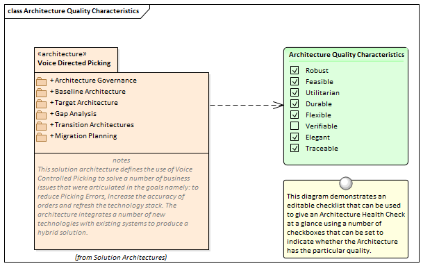 检查表可用作审核流程的一部分,以确保体系结构,标准或参考符合质量和最佳实践的规定标准。可以配置项目列表以适合组织,并且可以创建和应用任意数量的清单。