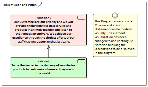 Enterprise Architect允许使用构造型的UML扩展机制对任务和详情语句进行建模,这些语句可以包含在图表中,并与其他元素(如目标)相关,进而与目标相关。这些图表对于高级管理人员和直线经理来说非常有吸引力,他们可以清楚地看到架构工作和后续实施计划可以追溯到战略原型。