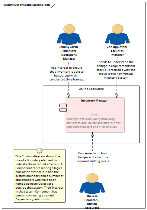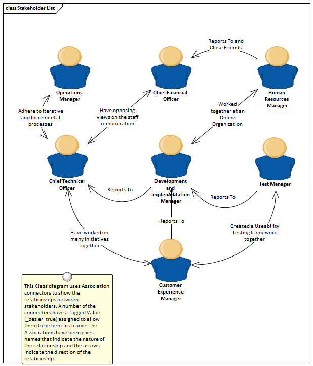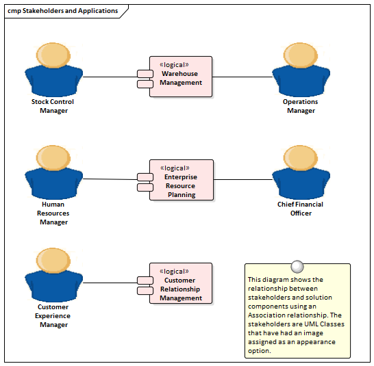 Many of the stakeholders will be managers or non technical staff who will benefit from viewing diagrams with graphics. Images from the standard Image Library could be used or an organization is free to create their own graphics to represent individual stakeholders or stakeholder groups.