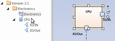 Click on the . The external element becomes a clone in the diagram's parent Package, with the specified version number. |