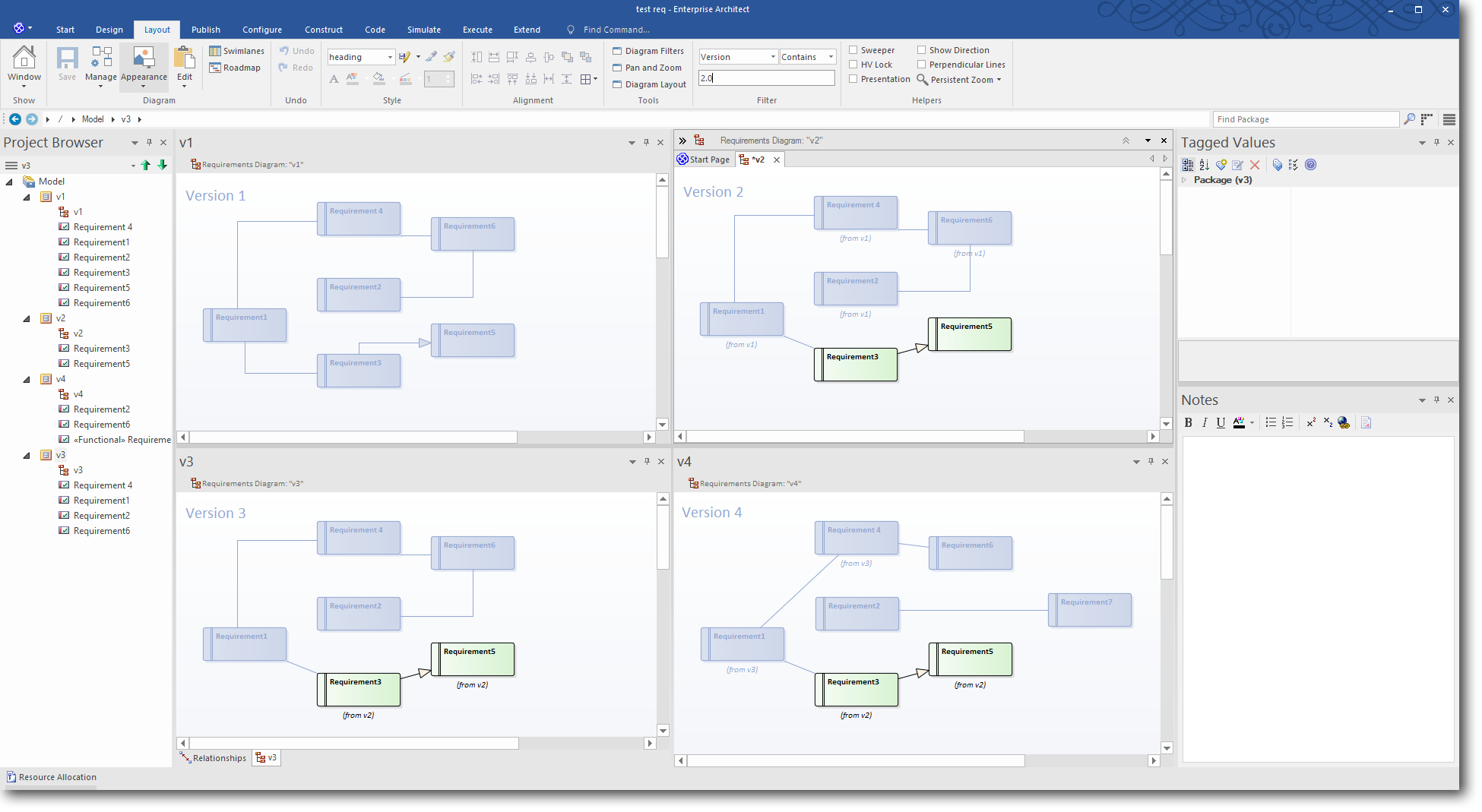 As the 'To-Be' model evolves, linked diagram elements from the previous version can be selected and automatically cloned into the new Package structure as required. This ensures model assets continue to develop seamlessly between the 'As-Is' and the 'To-Be' model without crossing over.