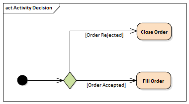 决策节点是在输出流之间进行选择的控制节点。决策节点具有一个传入边缘和多个传出活动边缘。
