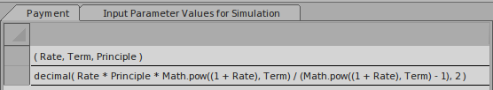 Note: The DMN Library already has a PMT function defined. This example mainly demonstrate how Literal Expression works and how to test it with a set of arguments.