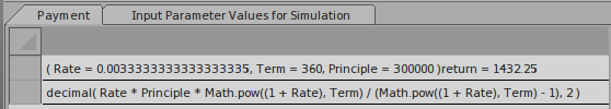 Because the definition of a Business Knowledge Model is self contained, it is possible to a "Unit Testing" by providing arguments for the parameters. For this reason, a Business Knowledge Model will have a "Input Parameter Values for Simulation" tab in the Expression Window.
