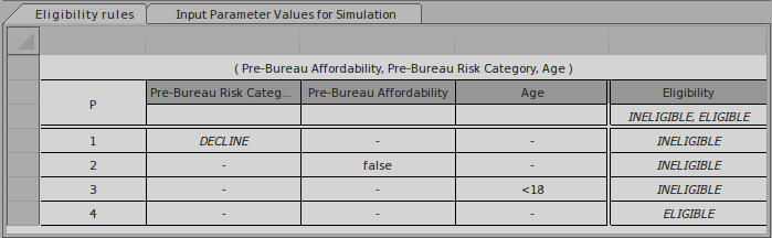 Note: the output order is defined as INELIGIBLE, ELIGIBLE; which means INELIGIBLE has higher priority than ELIGIBLE.