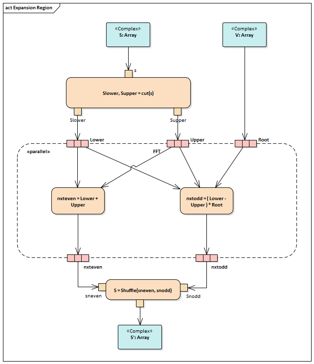 在活动图上,扩展区域包含一组要在输入数据上执行多次的ActivityNodes和ActivityEdges,对输入集合中的每个元素执行一次。如果有多个输入,则集合大小应匹配; 如果他们不这样做,最小的集合决定了执行的次数。集合也必须是相同类型(例如set或bag)。任何输出必须采用与输入集合至少相同大小的集合形式; 如果每次执行可以产生多个输出,则输出集合可以更大。