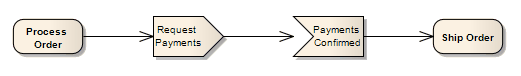 此示例反映了订单的付款流程。在收到付款后(来自请求付款,发送元素),确认付款并且流程继续发送订单。
