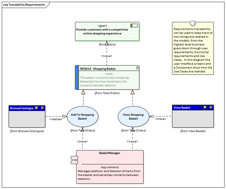 Requirements can be viewed in diagrams and related to other model elements creating compelling representations of traces between specifications and implementations.