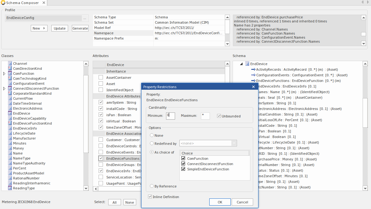 Drag the initial CIM Class(es) into the Class window that best represents the message. Set root elements appropriately using the context menu. |