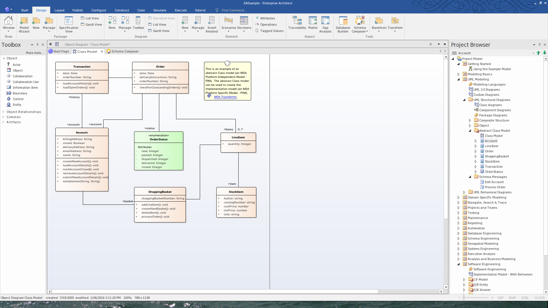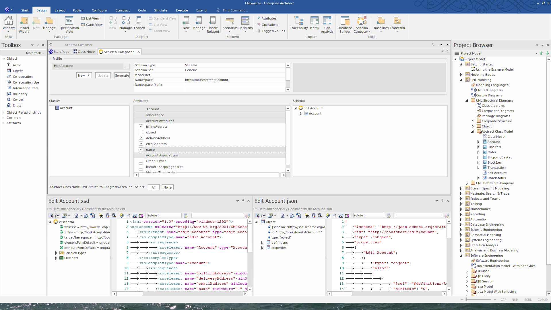 The Schema Composer is a versatile tool for quickly and easily defining a variety of formal schema from a model. Due to the unique nature of the Schema Composer, it is not necessary to use a profile or stereotyped elements when building the definition of an XSD (or other) document. This greatly enhances the re-usability of the underlying model and helps alleviate the complexity that arises when dealing directly with XSD or other element types and restrictions.