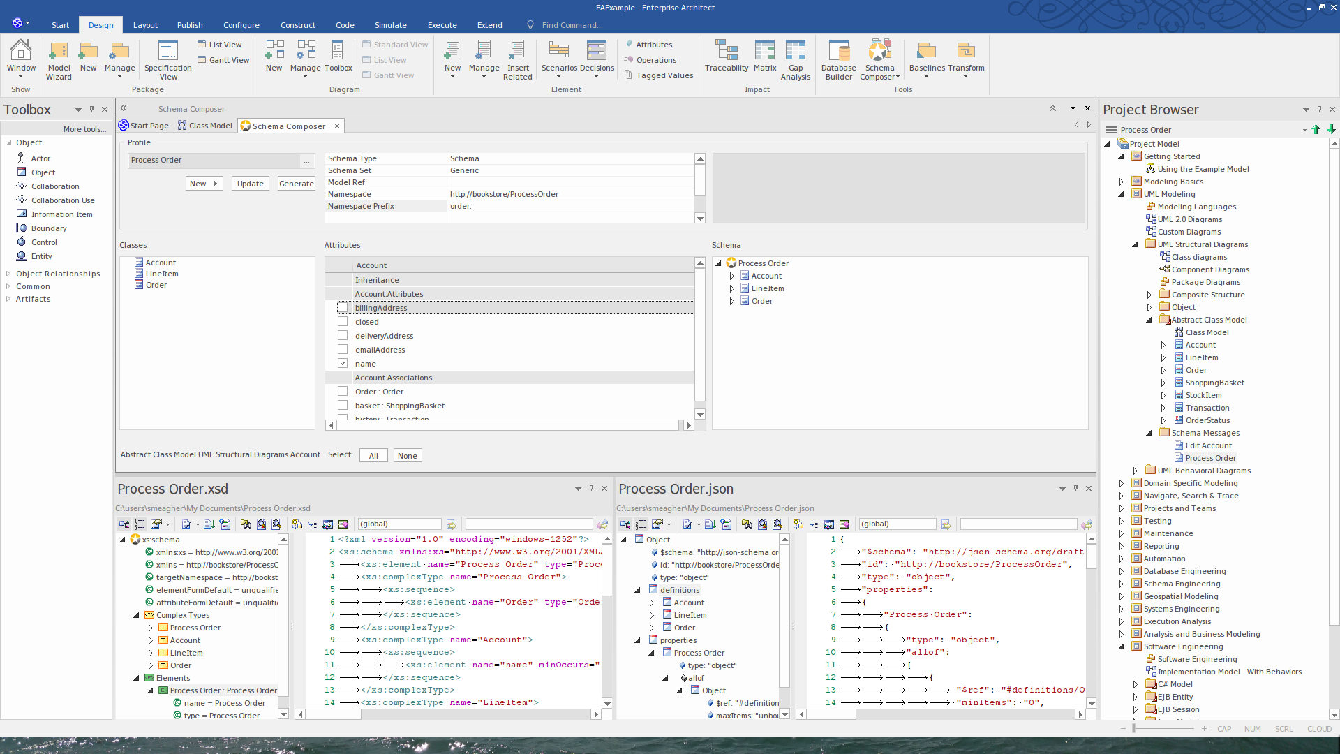 Figure shows a Schema Composition for the Process Order domain in the Example model.