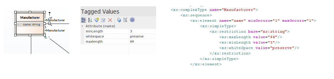 One of the common issues with schema composition is the requirement to be able to vary a type description to meet various demands of the instances a schema describes. A vehicle, for example, might be described by its brand, model and price by an element of a Truck type, but by its year, model and color by an element of a Sedan type. The issue is that we might only have one actual Vehicle Class at our disposal. To address this the Schema Composer allows you to clone the Vehicle Class and give it another name. You can then assign this version of Vehicle to any property that has Vehicle as its type. The type created is only available within the domain of the schema - the model is untouched.