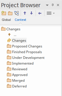 右键单击“上下文”选项卡中的对象将显示与项目浏览器的“全局”选项卡中相同的上下文菜单。