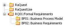 In order to configure a Package to save and load in XML format to a named file, you use the 'Package Control Options' dialog to flag the Package as being controlled and to set a number of options. These options include setting the XMI filename to save to/load from, the type of XMI to import and export, and whether to export and/or import the XMI in a batch process. When the Package is configured, this is indicated by a small colored rectangle on the left of the 'Package' icon in the Project Browser, as shown for the RQ01: Formal Requirements Package.