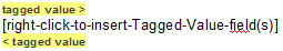 Delete the [right-click-to-...] text, right-click in the space and select the 'Insert Fields' option to add 'Tagged Value Name', 'Notes' and/or 'Value' fields. |