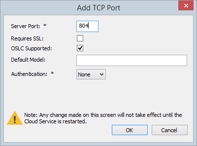 如“ 端口配置”主题中所述,在设置云服务器时,您需要至少定义一个端口,以便在Cloud Service和Enterprise Architect之间进行通信。