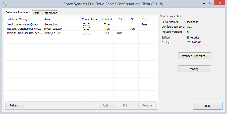 别名 - 标识存储库的唯一名称。在Enterprise Architect的“云连接”屏幕上,这是输入“模型名称”字段的值。定义数据库管理器时可以分配别名,如果此字段留空,则Cloud Service将确定其值。