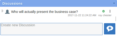 输入区域显示为空白字段,“讨论”按钮用于保存输入的文本; 如果已经对元素进行了一些讨论,则每个讨论的注释显示在输入字段之上。