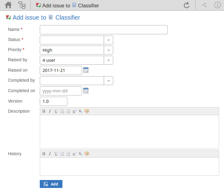 键入版本号或字母以指示同一问题的任何演变。默认为“1.0”,表示问题的第一个实例。 |
