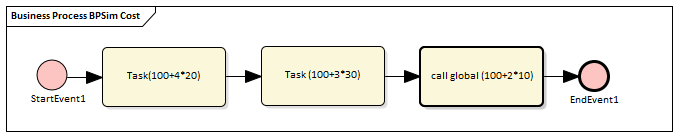 - Completion cost ('Fixed Cost' in the BPSim specification) - The cost incurred whenever an operation is completed; this cost can be related to Task, Process, Sub-Process, Call Activity or Resource elements