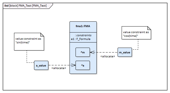 - Draw Allocation connectors to allocate values from environment to the model 'FMA'