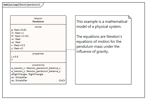 - Properties 'PI', 'm', 'g' and 'L' are constant, and are generated as a declaration equation