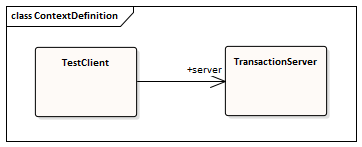 - An Association from TestClient to TransactionServer, with the target role named server.