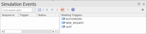 - The Simulator Events window helps you to trigger events; double-click on a trigger in the 'Waiting Triggers' column.