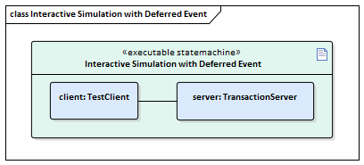- Create an Executable StateMachine Artifact with the name Interactive Simulation with Deferred Event and the 'Language' field set to JavaScript; enlarge the element.