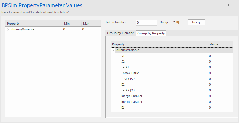 button on the tool bar to display the 'BPSim PropertyParameter Values' dialog
