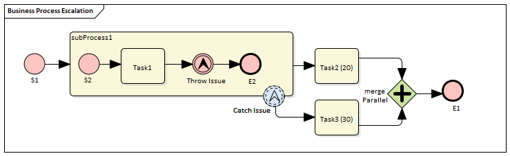 - Add a Sequence Flow to a target Throwing Escalation Intermediate Event Throw Issue (open the 'Properties' dialog and in the 'Type' field select 'Throwing > Escalation')