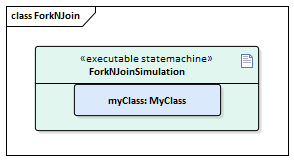 - Ctrl+Drag MyClass from the Project Browser and drop it on the ForkNJoinSimulation Artifact as a Property; give it the name myClass