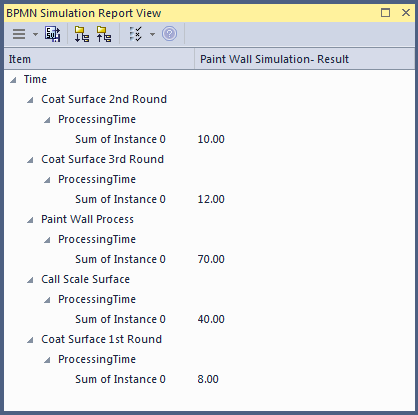 - The Sum Of Processing Time for Paint Wall Process is 70 minutes, composed of the four Call Activities: 40 + 8 + 10 + 12 = 70