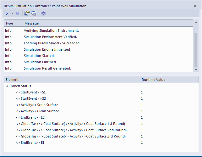 On the 'BPSim Simulation Controller' dialog toolbar, click on the