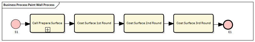 This is a simple example to simulate the process of painting a wall. We define the main process as preparing the surface and then painting it three times. Preparing the surface is further divided into tasks such as sanding and cleaning.