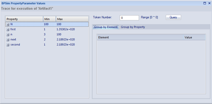 Click on this button to initiate a query on the token simulation, to populate the 'Group by Element' and 'Group by Property' tabs. |