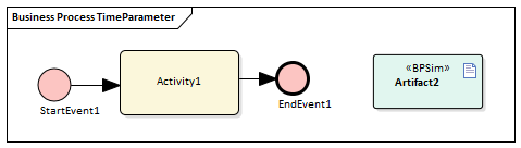 Consider the simple model TimeParameter in the Example Model (Example Model > Model Simulation > BPSim Models > Time Parameter), represented by this diagram: