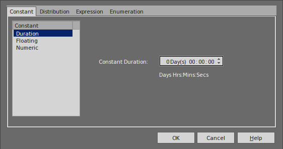 The 'Parameter Value' dialog helps you to define values for a wide range of parameters throughout the BPSim Configuration. It supports the definition of simple fixed values through to distributions and expressions that yield a derived value. Not all types of value or derivation are appropriate to all types of parameter.