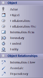 对象工具箱用于创建对象图,它反映了多样性以及实例化类可以提供的角色。它们可用于创建应用关系和类的不同情况。