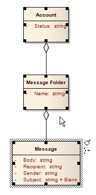 For example, in this diagram, the Message Class height and width are used to set the height and width of the Account and Message Folder Classes.