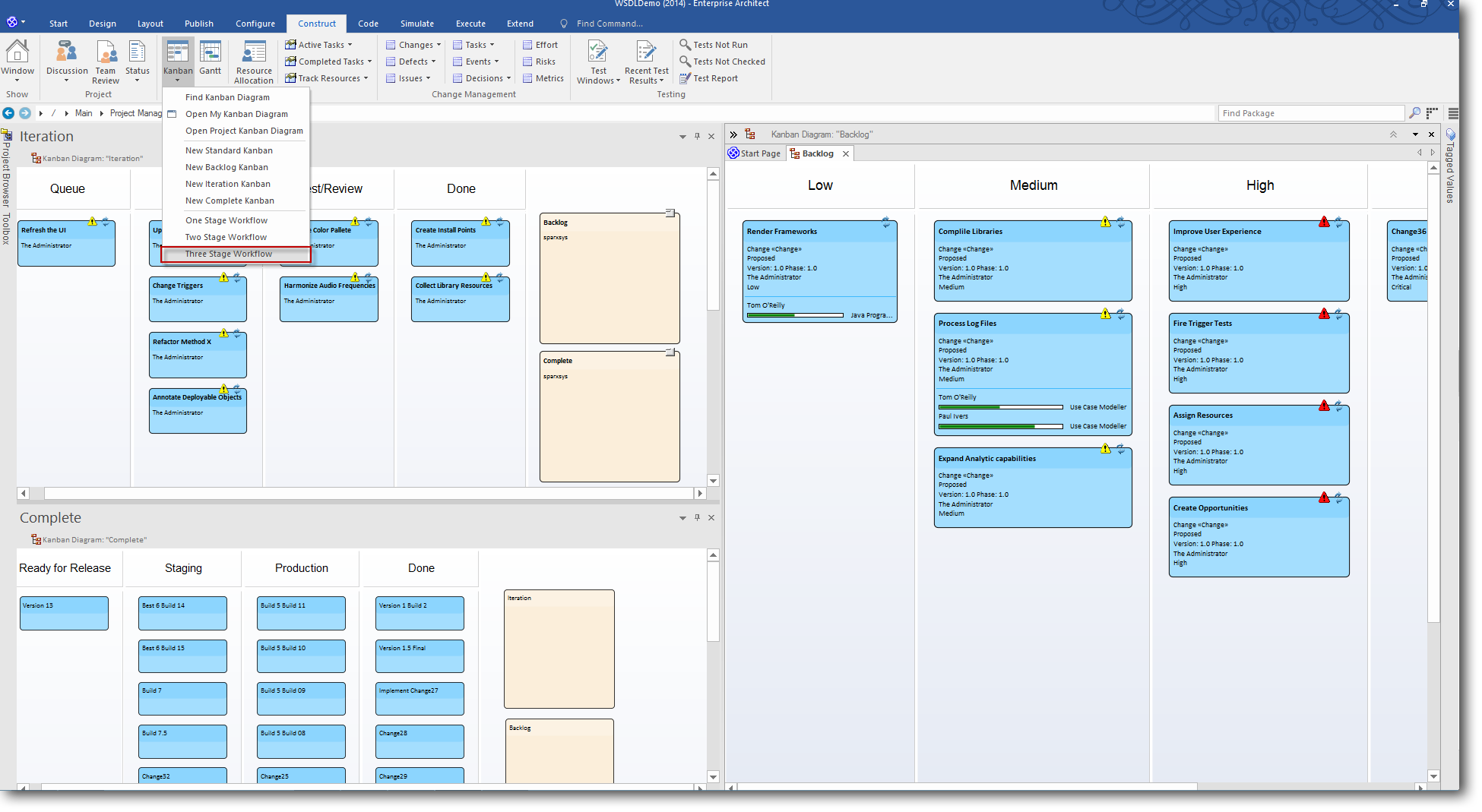 此图显示了作为模型模式“三阶段工作流程”的一部分包含的看板图。 |