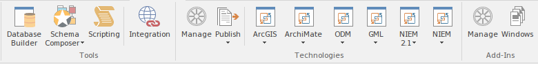 因此,此功能区的内容取决于您已安装和启用的加载项和技术,以及它们是否已分配给Enterprise Architect的特定功能区域。