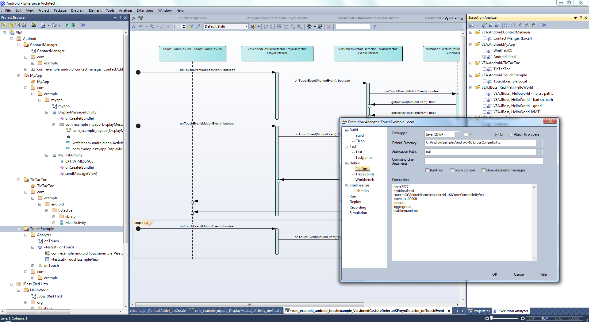 The Visual Execution Analyzer (VEA) is made up of an advanced and powerful suite of tools that allow you to build, debug, record, profile, simulate and otherwise construct and verify your software development while keeping the code tightly integrated with your model. Enterprise Architect has rich support for a wide range of popular compilers and platforms, in particular the Java, .Net and Microsoft Windows C++ environments. Software development becomes a highly streamlined visual experience, quite unlike working in traditional environments.