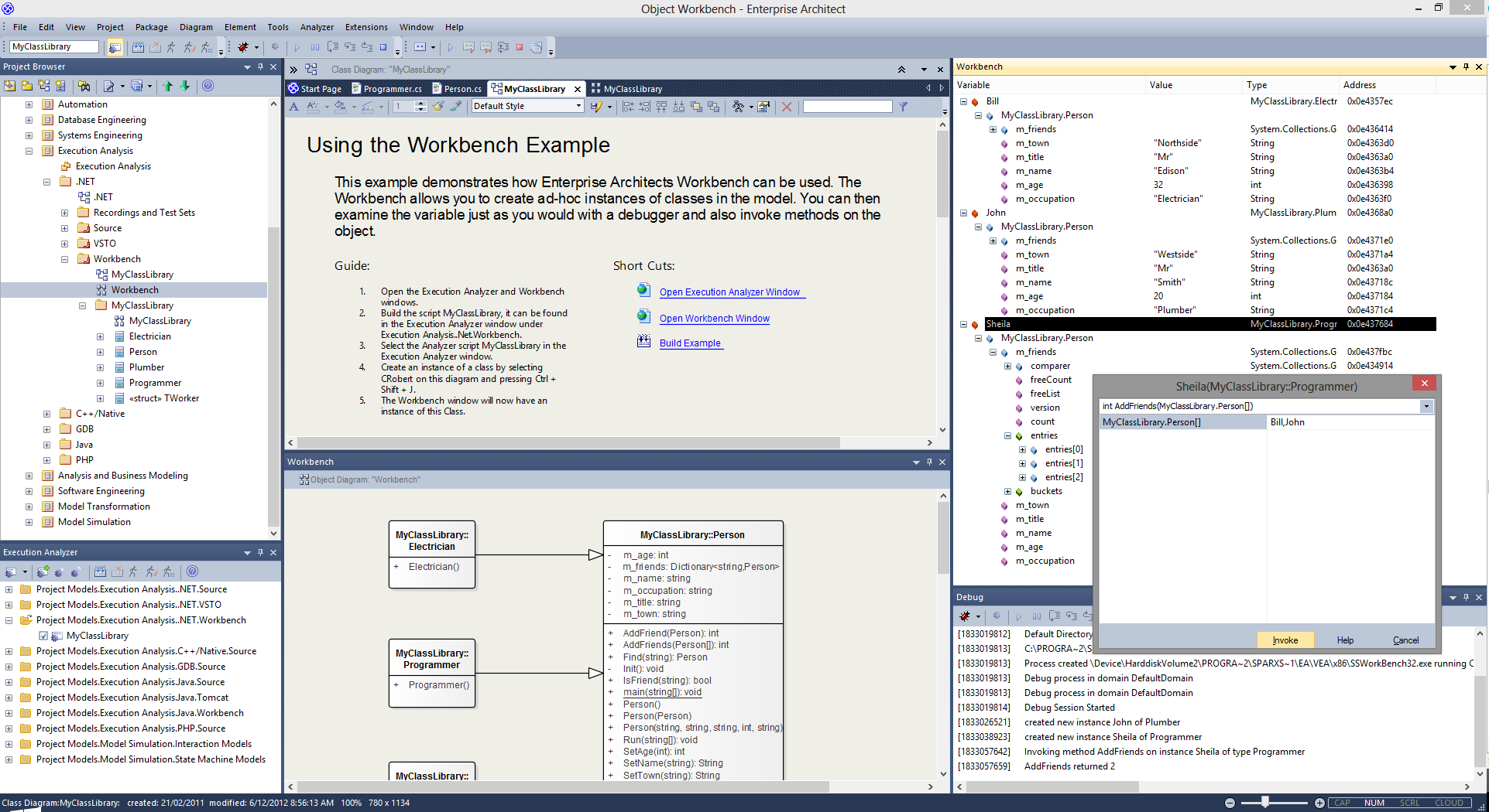 Enterprise Architect is itself modeled, built, compiled, debugged, tested, managed, profiled and otherwise constructed totally within the Visual Execution Analyzer built into Enterprise Architect. While the VEA can be used to complement other tool suites, it also shines when used as the primary development IDE in close coupling with the model and project management capabilities provided by Enterprise Architect.
