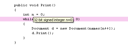When a breakpoint occurs, you will see all the local variables in that window. You can also inspect variables in the Source Code Editor by hovering your mouse over the reference. Here are some examples.