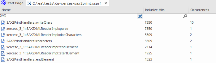 Unfiltered Summary Report listing all participating functions in order of inclusive hits.